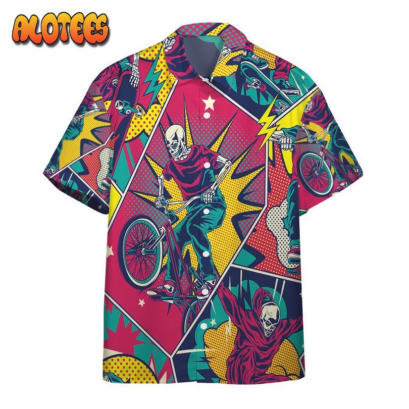 Comic Style Skull Riding Hawaiian Shirt: