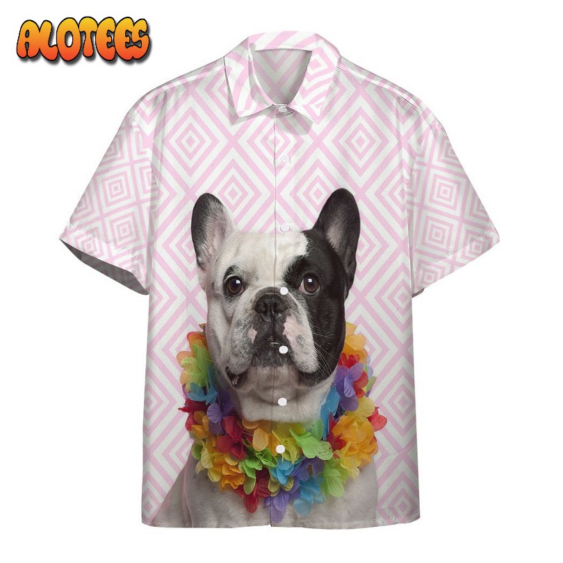 French Bulldog Wearing Hawaiian Lei Hawaiian Shirt: